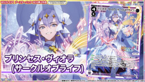 カード効果は全ルリグ共通で持っている「歌のカケラ」能力をコピーするターン1効果と紫ルリグらしくバニッシュ時にエナゾーンに行かせない効果とパワーマイナスの効果を持っていますね。